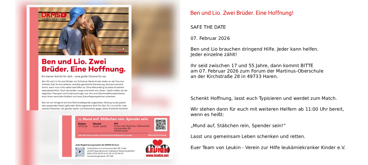 Ihr seid zwischen 17 und 55 Jahre, dann kommt BITTE am 07. Februar 2026 zum Forum der Martinus-Oberschule an der Kirchstraße 28 in 49733 Haren.