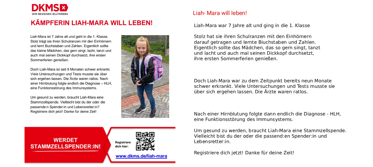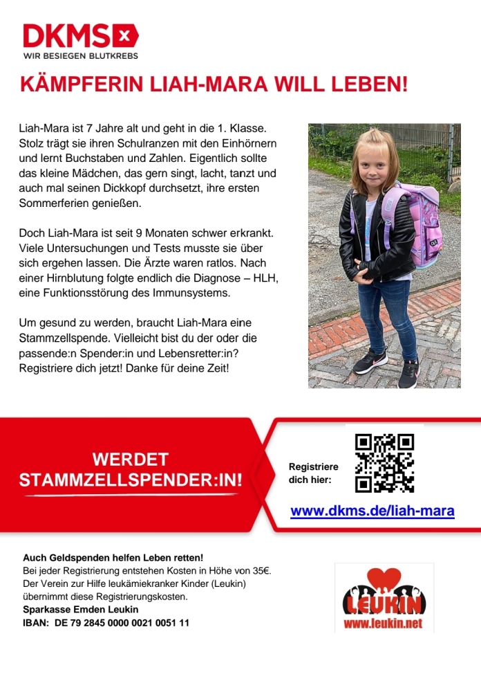 Um gesund zu werden, braucht Liah-Mara eine Stammzellspende. Vielleicht bist du der oder die passend:en Spender:in und Lebensretter:in.