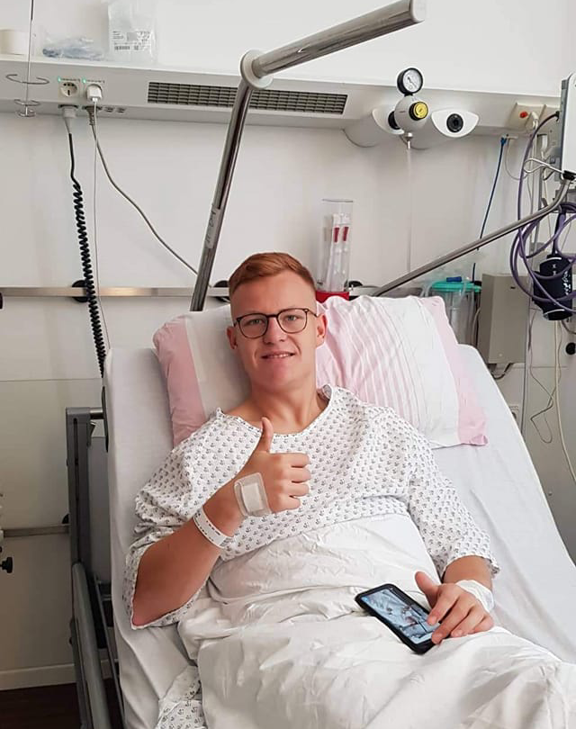 Das Bild im Krankenhaus wurde unmittelbar nach der OP gemacht. Tobias fühlte sich direkt topfit und hat auch jetzt keinerlei Beschwerden.